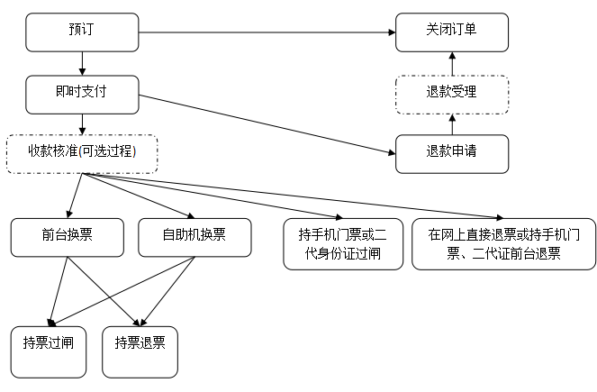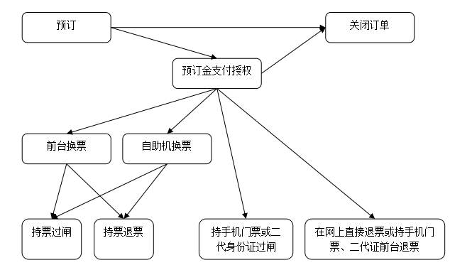 (3)购票(在前台现付购票或自助机现付购票),游客获得物理介质门票;